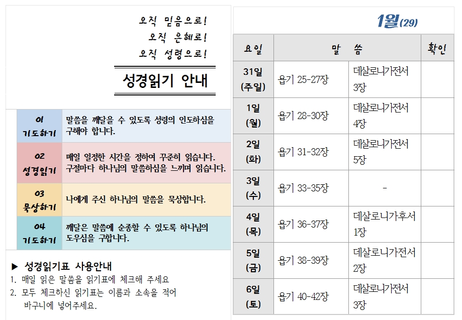 | ±ÛÁ¦¸ñ | ¼º°æÀϵ¶ 29ÁÖÂ÷ ÀÏÁ¤(1¿ù 31ÀÏ~2¿ù 6ÀÏ) |