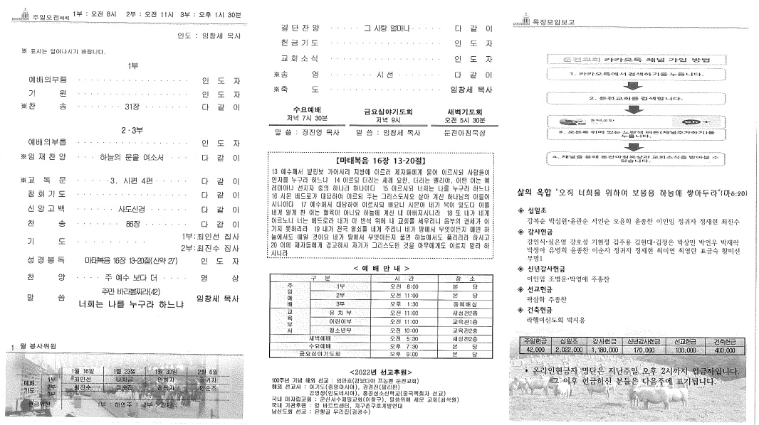 2022³â 1¿ù 16ÀÏ ÁÖÇöÀý µÑ°ÁÖÀÏ ÁÖº¸ |
